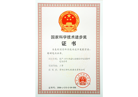 國家科學技術進步獎證書